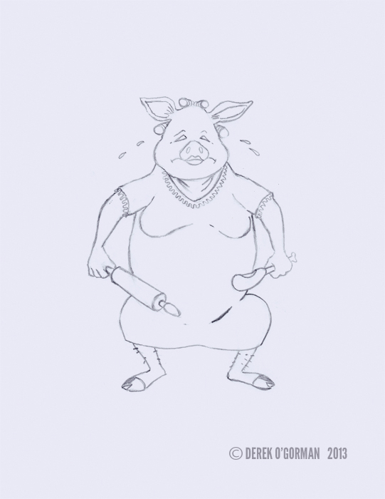 This is a pencil study for the character design of Mama Pig from "The Three Little Pigs".